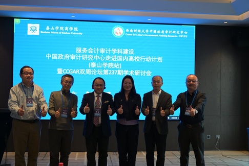 2025年11月16日,由泰山学院商学院与西南财经大学中国政府审计研究中心联合主办的“服务会计审计学科建设——中国政府审计研究中心走进国内高校行动计划(泰山学院站)”暨CCGAR双周论坛第237期学术研讨会在泰安琼花岛酒店成功召开。来自西南财经大学、哈尔滨工程大学、云南财经大学等高校的知名专家学者,以及会计学术联盟代表、高校师生代表通过线下线上结合的方式参会,共同聚焦会计审计学科建设与人才培养新路径。
