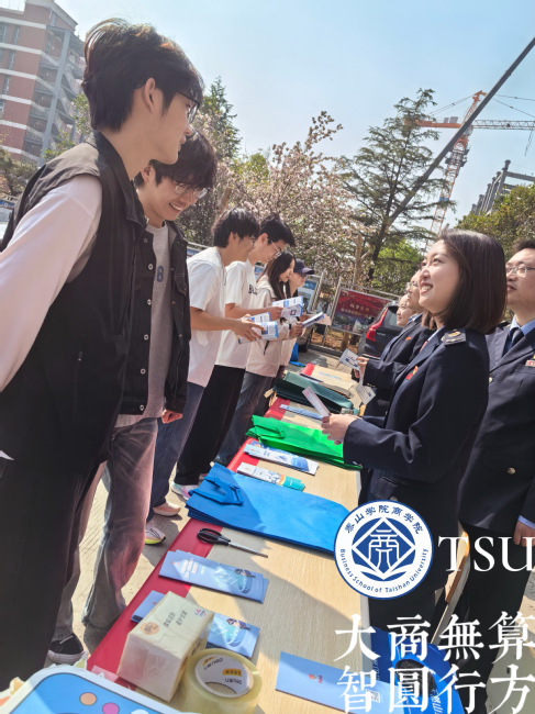 4月2日,商学院携手泰安高新区税务局,在新生一部开展“税宣进高校 青春启新程”主题活动。活动以第35个全国税收宣传月启动为契机,聚焦高校学生成长发展过程,将税收政策宣传、法治教育与就业创业指导有机融合,推动税法知识走进校园、贴近学生,为青年学子上好一堂生动务实的税收普法实践课。