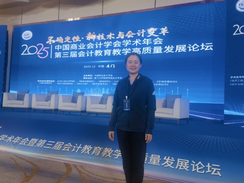 近日,商学院教师王铁萍赴厦门参加了“第六期全国会计青年骨干教师能力素养提升项目”,并参加了同期举办的“2025年学术年会暨第三届会计教育教学高质量发展论坛”及企业参访活动。